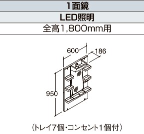 PV洗面化粧台 間口600mm 1面鏡 全高 1,800mm用 くもり止めコートなし PV2N-605SY + MPV1-601YJ リクシル Lixil