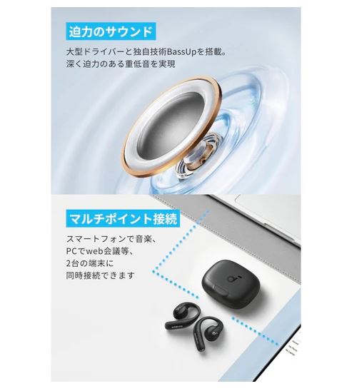 ※2023.12/1より、LDACに対応致しました。 (LDACはAndroid 8.0以降のデバイスでのみ使用可能です。Soundcoreアプリをver.3.4.4にアップデートしてご使用ください。尚、12/1以前にご購入いただいたお客様に関してもご使用いただくことが可能です。)