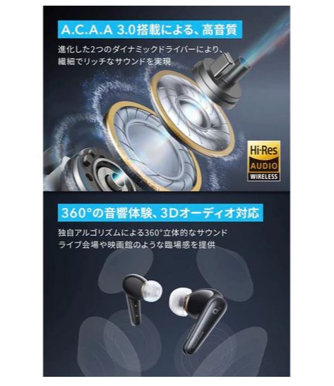 ・対応コーデックに記載の「LDAC」は、Soundcoreアプリとイヤホンのファームウェアをアップデート後ご利用いただけます。
