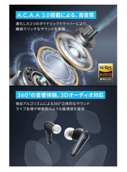 ・対応コーデックに記載の「LDAC」は、Soundcoreアプリとイヤホンのファームウェアをアップデート後ご利用いただけます。