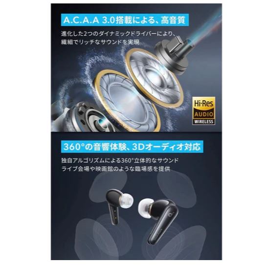 ・対応コーデックに記載の「LDAC」は、Soundcoreアプリとイヤホンのファームウェアをアップデート後ご利用いただけます。