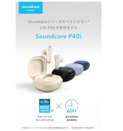 A3955N21 Anker ワイヤレスイヤホン Soundcore P40i ホワイト アンカー