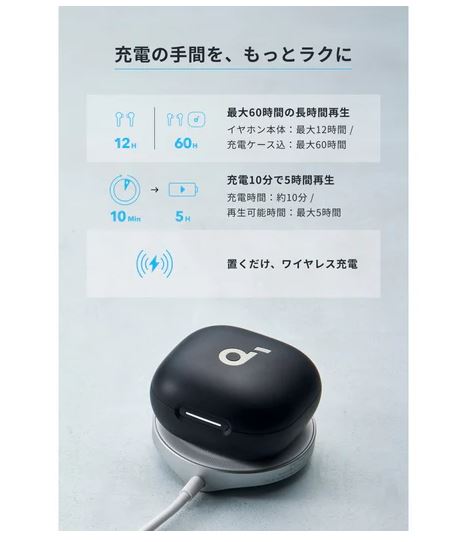 本体、充電ケース、イヤーチップ (5種) 、USB-C&USB-A ケーブル、安全マニュアル、クイックスタートガイド、技適マーク認証済み商品 (周波数帯:2.40~2.48GHz) 、18ヶ月保証 + 6ヶ月 (Anker Japan 公式サイト会員登録後) 、カスタマーサポート