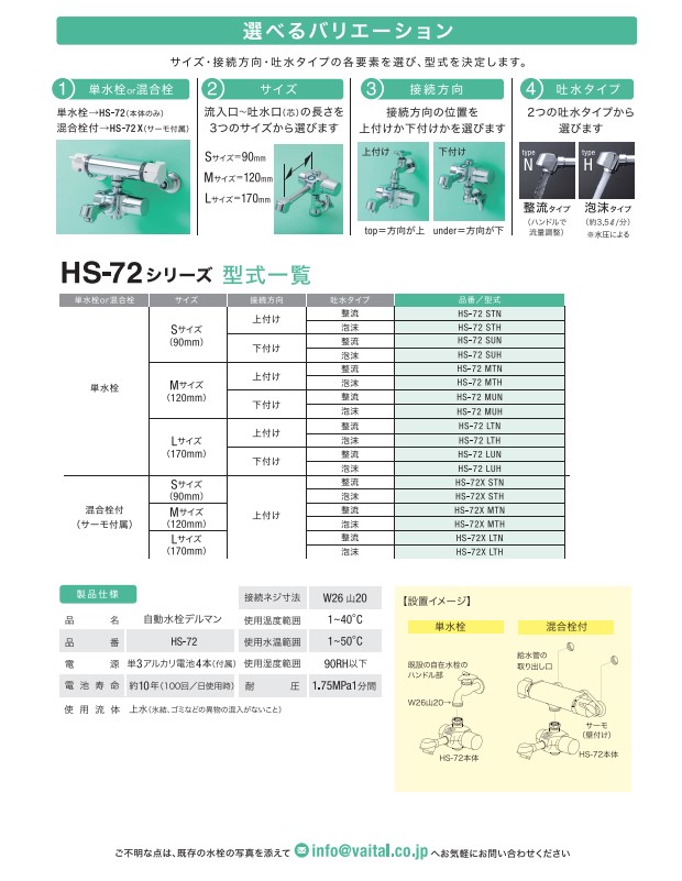 HS-72 LUN バイタル 自動水栓 単水栓 DELMAN デルマン 送料無料
