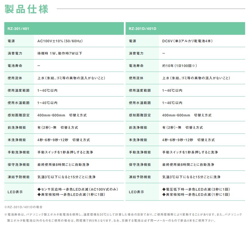 (前洗浄「無」設定時、付属のエボルタ乾電池で100回/日の場合)